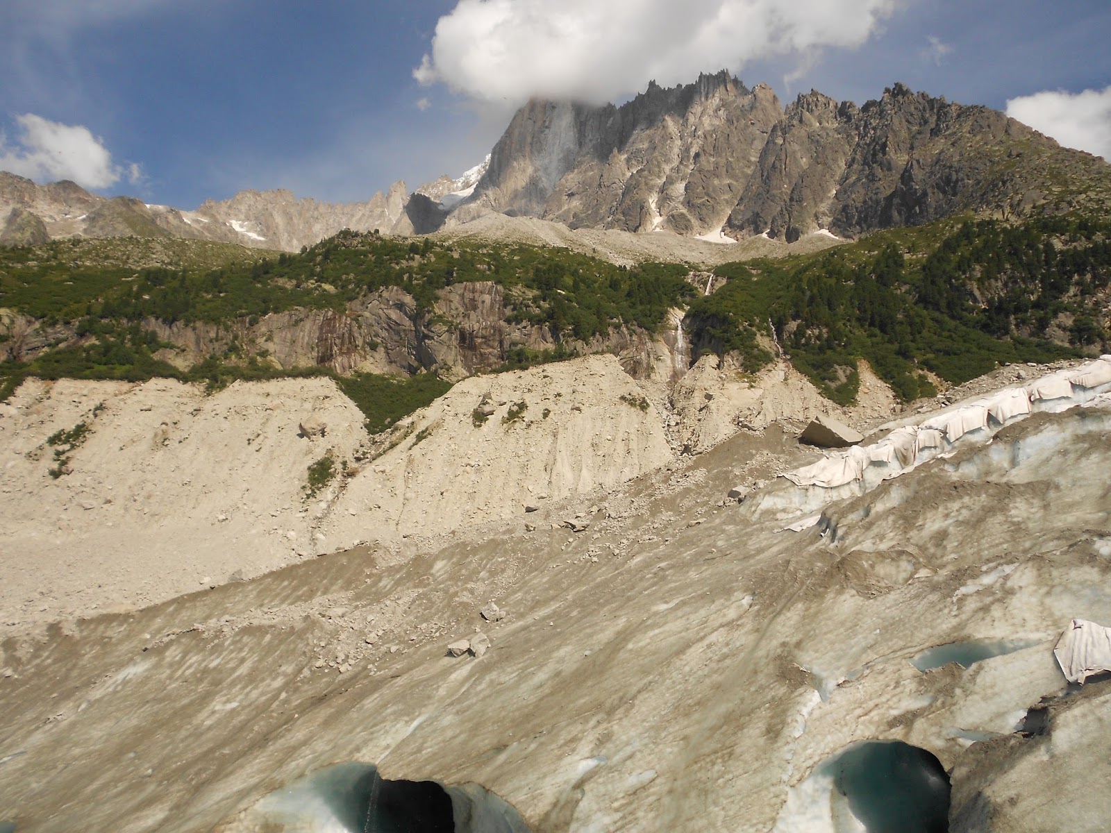 Para acceder al glaciar tenemos dos opciones: recorrer un largo camino o coger el tren cremallera de Montenvers en el centro de Chamonix. Tanto uno como el otro nos llevaran a la cadena montañosa que ha dejado el glaciar a su paso. El año 1820 el glaciar llegaba donde actualmente está la estación, desde entonces, el glaciar se ha ido fundiendo a marchas forzadas, esto nos permite hacer una idea de la magnitud de ese glaciar en su día. Cada año el grosor se reduce entre 4 y 3 metros.